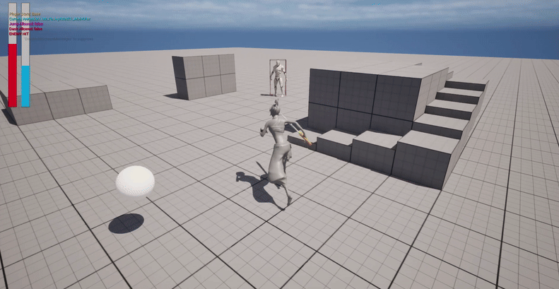 My task was to create an animation system that allowed multiple animations to flow into each other while buffering player inputs so that the attack combos smoothly transitioned into one another. The system also had to be modular enough to switch out placeholder animations with the final animations easily. I also had to create the aim offset for the player since aiming was involved with the ranged attacks, and the character had to look at where they were aiming so everything would stay visually coherent.